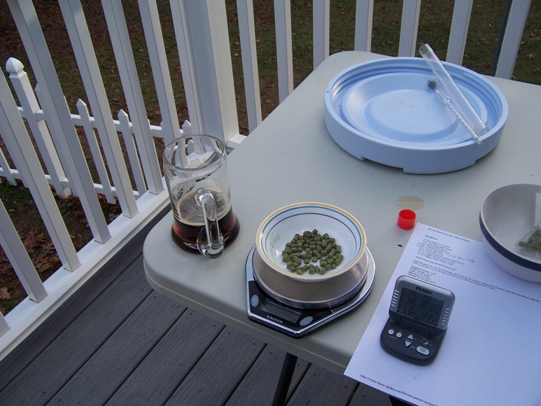 As my contribution in teaching a friend to homebrew, I invited my friend Lyle over for the Brown Porter brew session. With some passing showers in the morning and colder temperatures rolling through, it didn’t look like great homebrewing weather. In the afternoon, the clouds broke a little bit and the winds were tolerable…so the brew was a go.