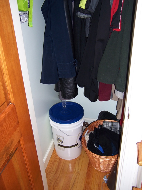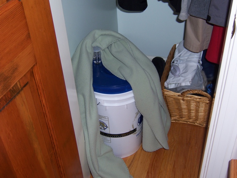 I have put the bucket in this closet before, but it was winter and I think my heating pad rig worked better.