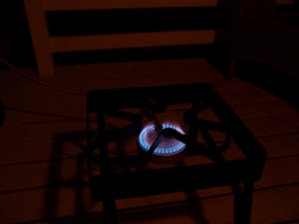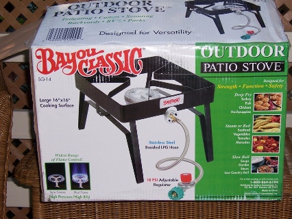 You need to convince your hubby of all the practical uses of the propane burner. Not only could you cook corn and brew beer, but also you could use it to deep fry a turkey!